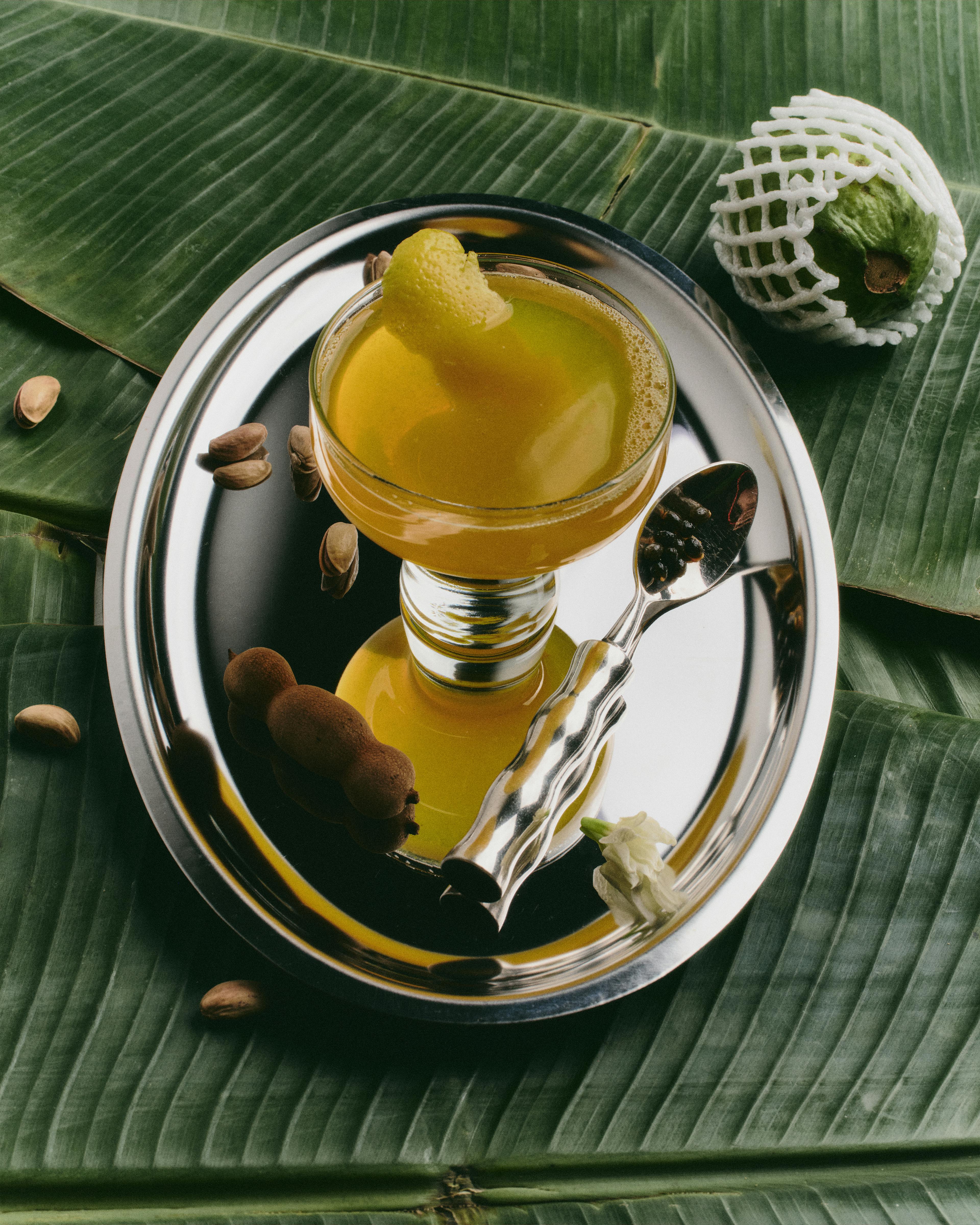 - Add 45ml Mirchi, 5ml Aperol, 25ml fresh lime juice, 25ml sugar syrup and 1cm slice of fresh ginger into a shaker with ice.