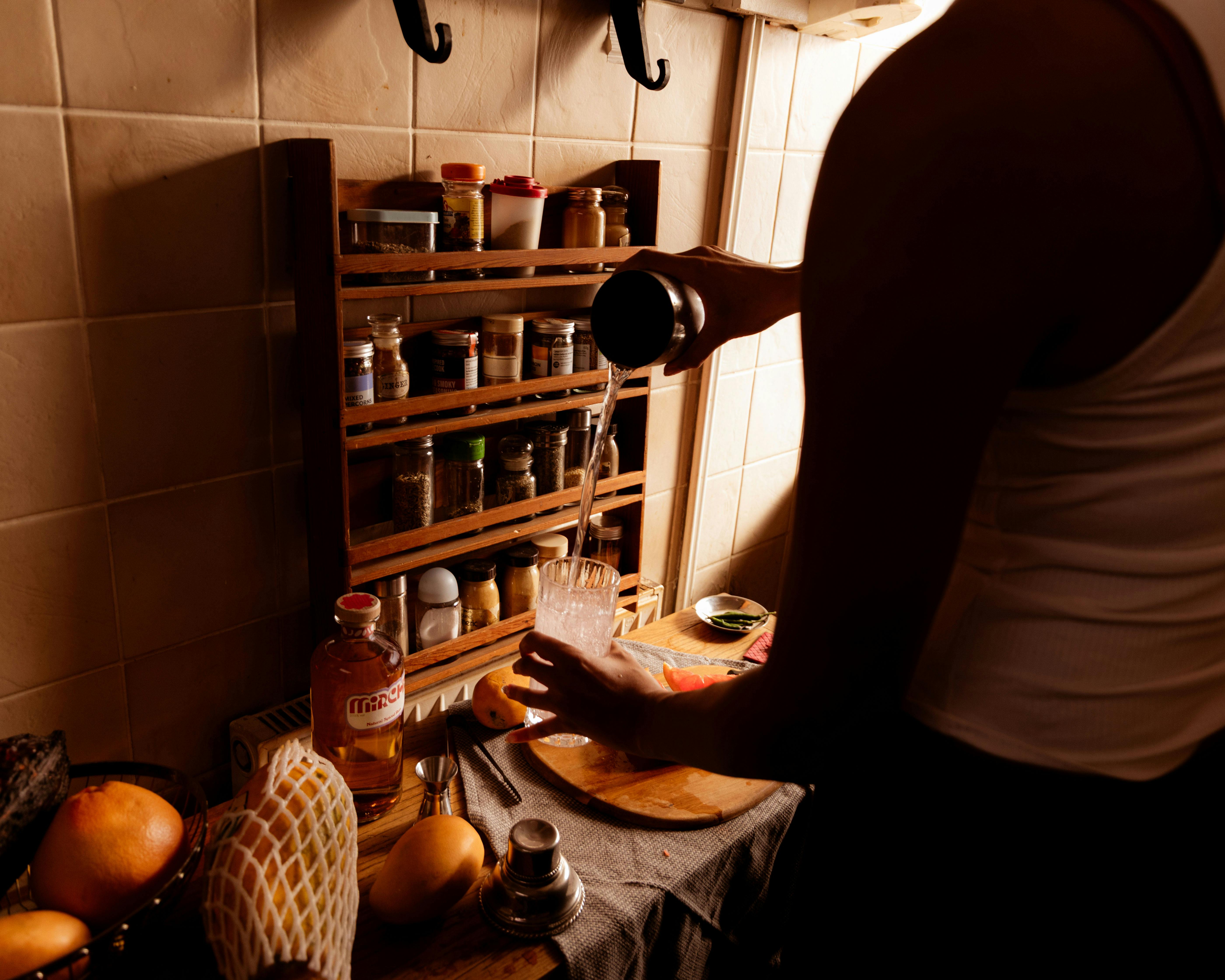 - Strain into a rocks glass over ice.
